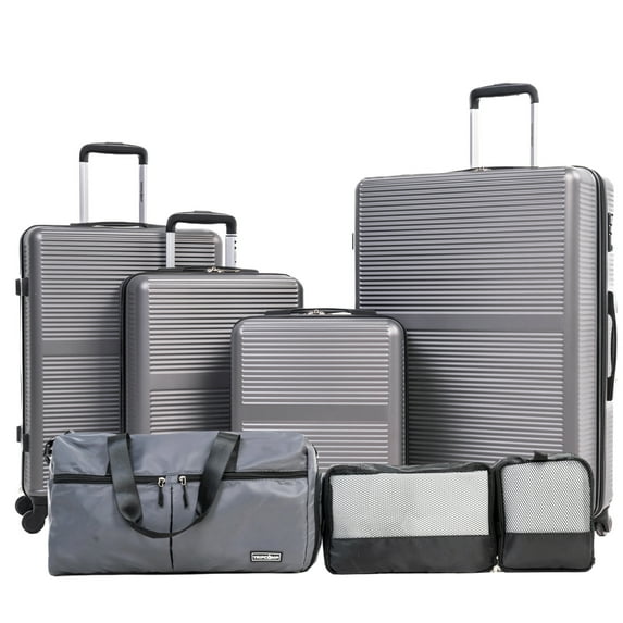 Dies ist ein leichtes und gut verarbeitetes 7-teiliges Hartschalenkofferset. Die Hartschale besteht aus neuem, superdickem ABS-Material, wodurch das Gepäckstück langlebiger, leichter und stoßfester wird. Die strukturierte Oberfläche verhindert Kratzer und sorgt dafür, dass es auch nach der Reise schön bleibt. Einzigartiger Stil, verschleiß- und kratzfest. Das Frontdesign mit einem wunderschönen Rautenmuster aus horizontalen Streifen verleiht dem Hartschalenkoffer nicht nur Stil, sondern erhöht auch die Festigkeit und sorgt für eine lange Lebensdauer.